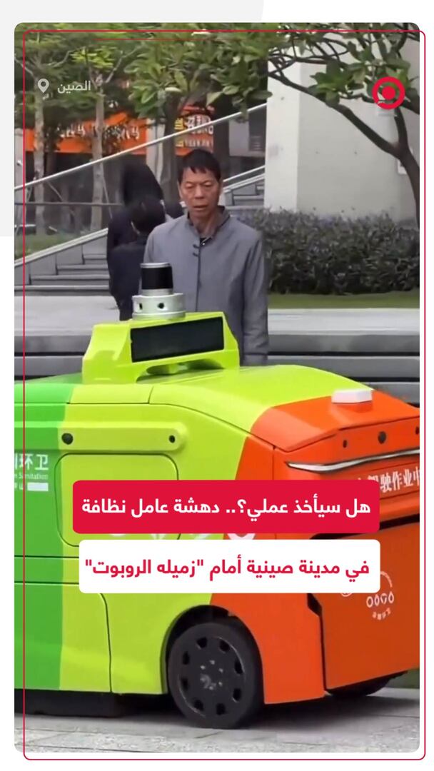 مقطع مصور من مدينة شنجن الصينية يلقى تفاعلا واسعا على مواقع التواصل، يظهر فيه عامل نظافة وهو يحدّق بدهشة في "زميله" الروبوت المخصص لتنظيف الشوارع. #شنجن #الصين #روبوت