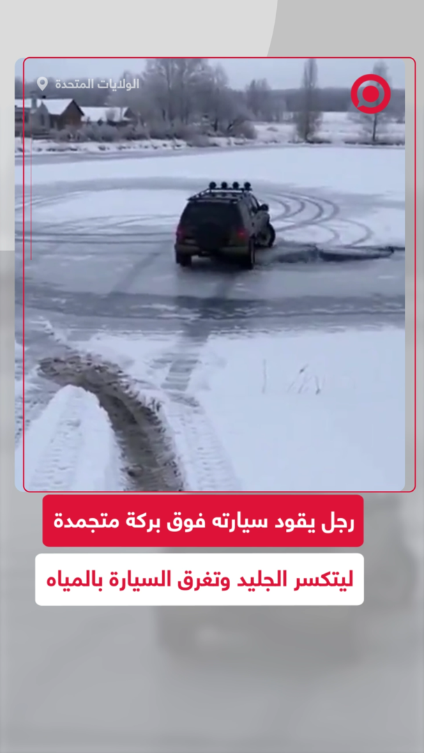 مغامرة تنتهي بعكس المتوقع.. رجل يحاول قيادة سيارته على بركة متجمدة بعد تساقط الثلوج، لتنتهي مغامرته بتكسر الجليد وغرق السيارة في المياه بولاية أوكلاهوما الأمريكية. #سيارة #جليد #أمريكا #غرق