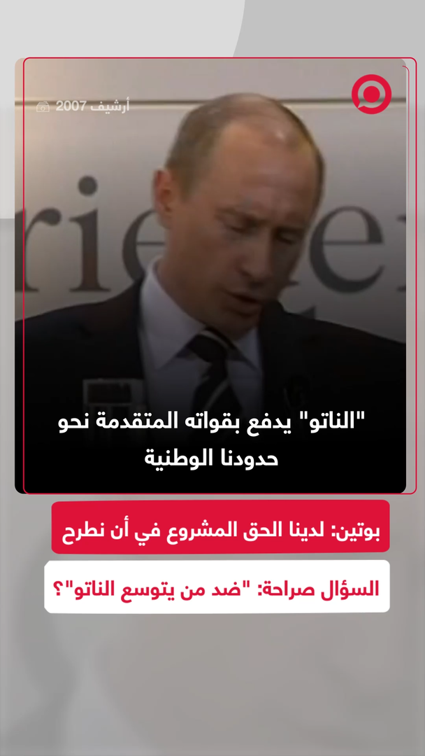 بوتين في عام 2007: لدينا الحق المشروع في أن نطرح السؤال صراحة: ضد من يتوسع "الناتو"؟