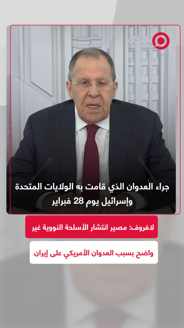 خلال مشاركته بمؤتمر موسكو لعدم انتشار الأسلحة النووية.. وزير الخارجية الروسي سيرغي لافروف، يعبّر عن قلقه المتزايد تجاه مستقبل نظام عدم الانتشار النووي في ظل العدوان الأمريكي - الإسرائيلي على إيران والذي يلقي بظلال أزمته على منطقة الشرق الأوسط كلها.